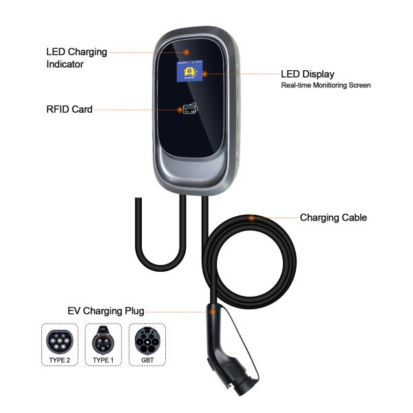 The charging station is equipped with an LED display, it supports Bluetooth/WiFi/RFID and APP control, enabling users to remotely manage and monitor the charging process.