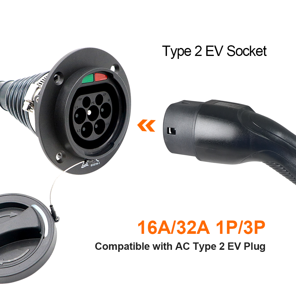 This is Type 2 Male EV Socket, As your requirement, we have the socket with cable, and the cable length can customized.we also have Type 1 EV Socket、GBT EV Socket and DC EV Socket.More details, welcome to contact with us!