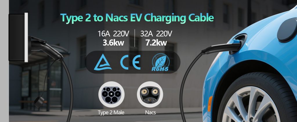 Type 2 to Nacs EV Charging Cable